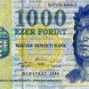The 1000 Hungarian Forint note is the banknote with a blue color and dimensions 154 x 70 mm